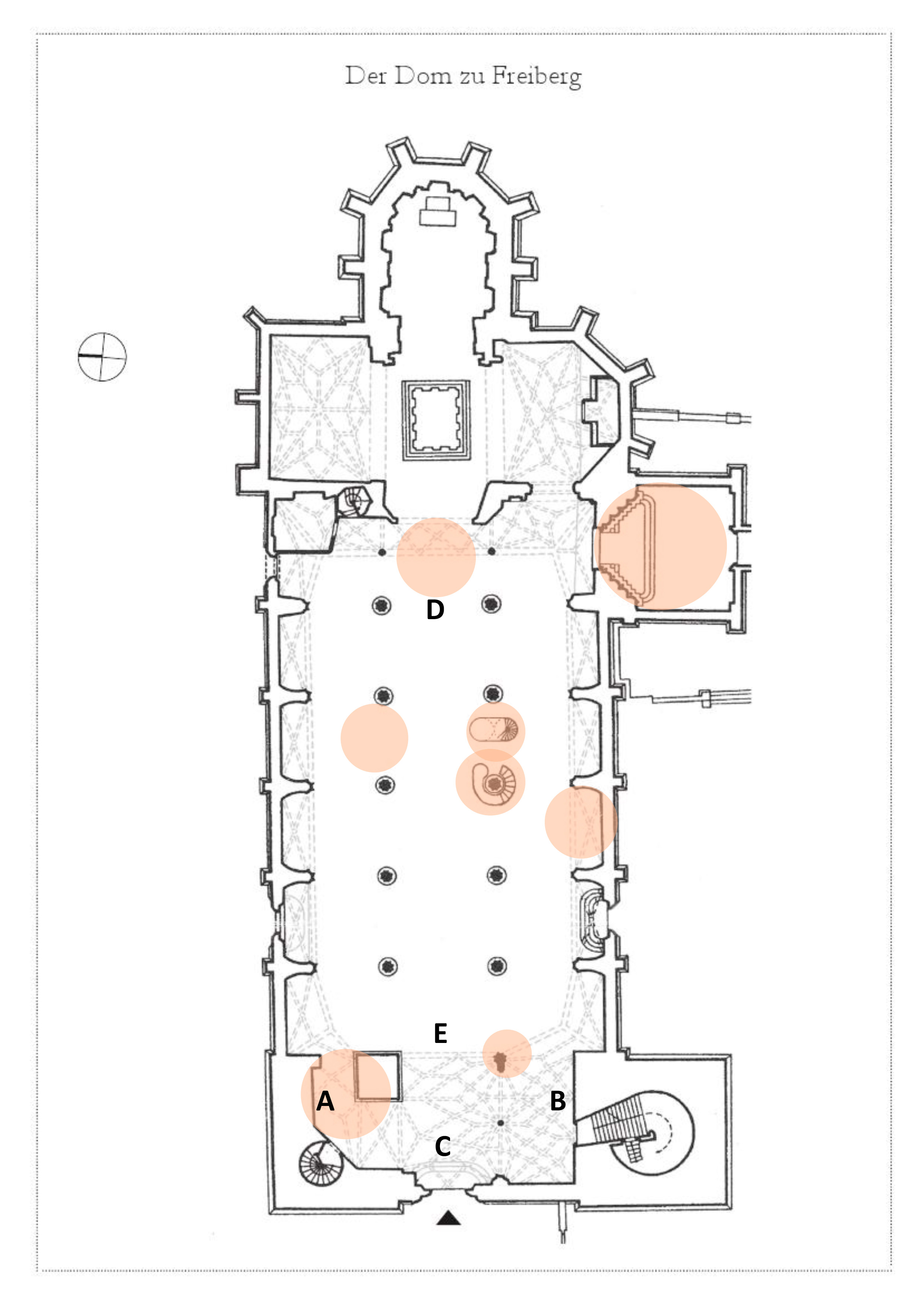 In der Grablege im Freiberger Dom wurden von 1541 bis 1694 die lutherischen Fürsten des sächsisch-albertinischen Fürsthauses begraben. In ihrem Aussehen und ihrer Dekoration ist die Begräbniskapelle weitaus prunkvoller gestaltet als die übrige Ausstattung des Freiberger Doms: marmorverkleidete Säulen, bronzene Statuen und eine aufwendig gestaltete Stuckdecke prägen ihr Erscheinungsbild. All das wurde von einem italienischen Architekten namens Giovanni Maria Nosseni entworfen, er wusste, wie man Eindruck macht!