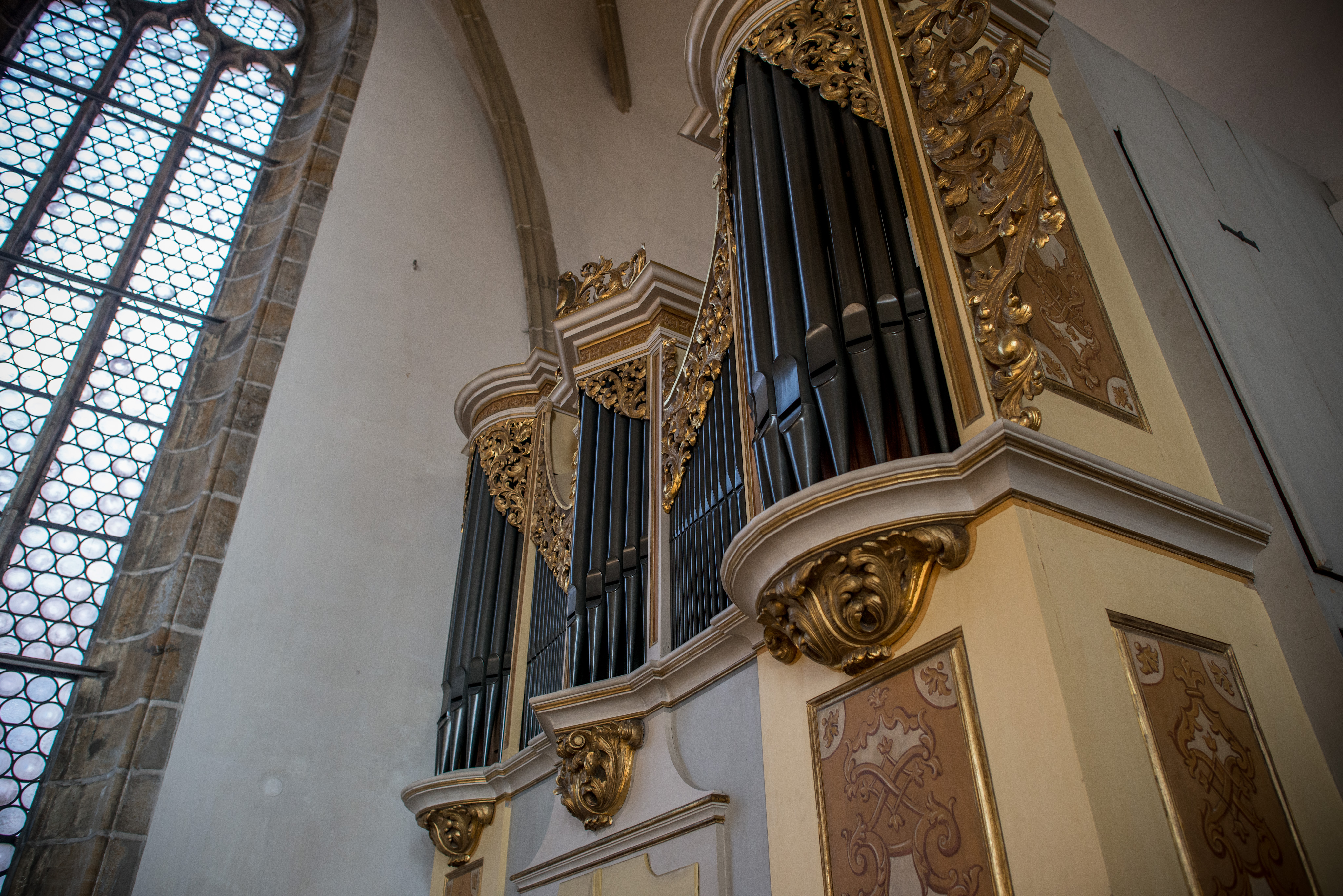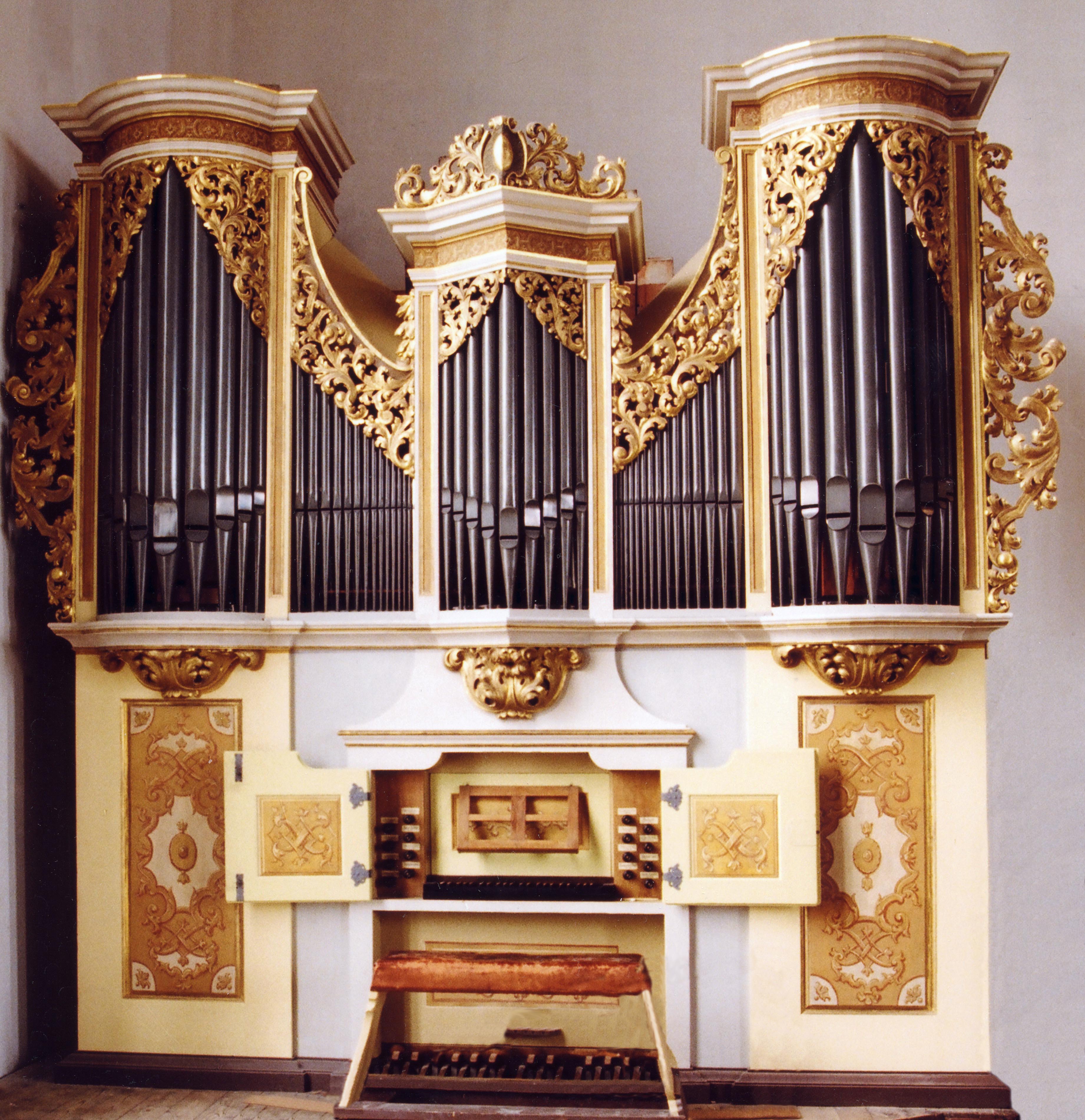 Die Kleine Silbermann-Orgel mit einem Manual und 14 Registern stammt ursprünglich aus der Johanneskirche.