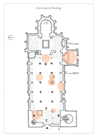 Im Kirchenschiff des Freiberger Doms gibt es viel mehr zu sehen als man auf den ersten Blick wahrnimmt, beispielsweise gibt es viele geschnitzte Holzfiguren. Einige zeigen Szenen aus dem Leben Jesu, andere erzählen biblische Geschichten. An den Freipfeilern im Mittelschiff ist der sogenannte Jungfrauenzyklus, der von den klugen und törichten Jungfrauen berichtet (nach Matthäus 25,1–13), zu sehen. Außerdem gibt es mehrere Christusdarstellungen mit echtem Haar, ungewöhnlich und beeindruckend zugleich.